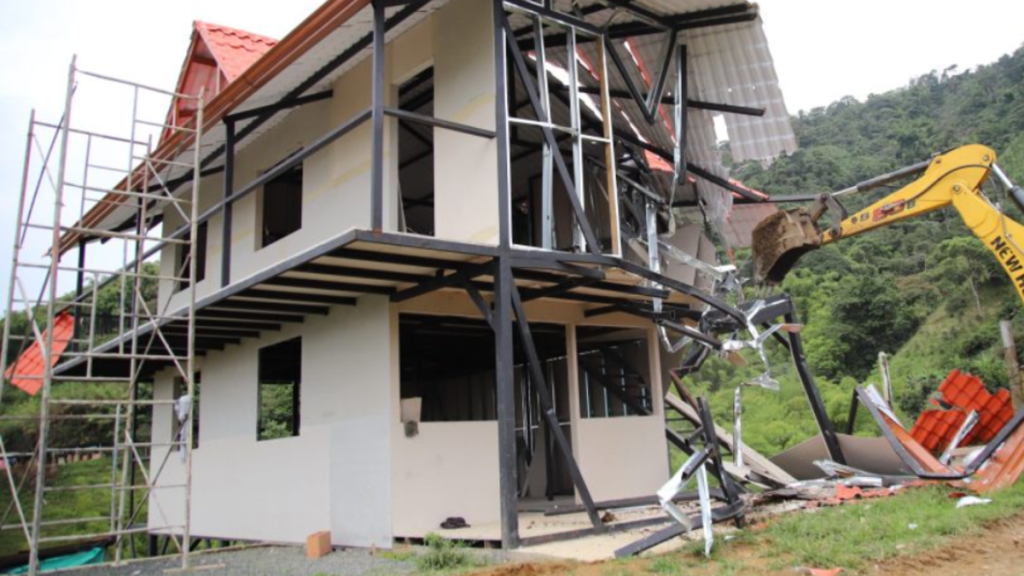 Las autoridades de Dosquebradas, en convenio con la Corporación Autónoma Regional de Risaralda (Carder), derribaron Construcción realizada sin permiso en una propiedad rústica en el distrito de Comuneros.