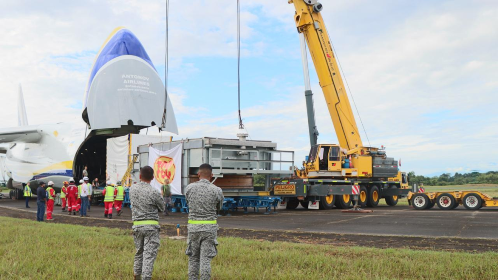 Así lo aseguró el comandante del Comando Aéreo de Combate N°2, general de brigada Alejandro Vélez «Utilizaron todas las posibilidades de la logística aérea que les permitió acomodar el avión más grande del mundo y con la mayor carga útil.con equipos que mantendrán la sostenibilidad energética del complejo Pauto y del campo Floreña por más de diez años”.
