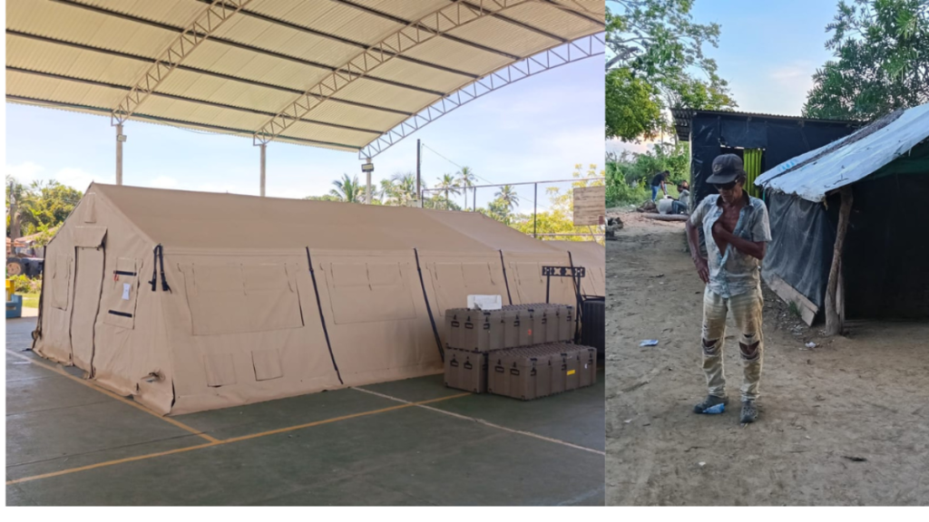 Director de la Unidad Nacional para la Gestión de Riesgos y Desastres -UNGRD-, Carlos Carrillo Estuvo cuarenta minutos en la comarca de La Mojana y para presidir la reunión instaló un tienda con aire acondicionado, que fue transportado especialmente a bordo de un camión con remolque.