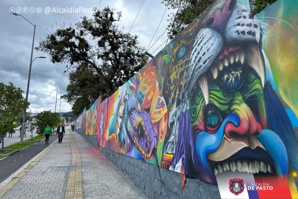 El mural más grande de Pasto, ubicado afuera de la Escuela Normal Superior, se consolida como un nuevo punto turístico y fotográfico de la ciudad. Con 320 metros lineales sobre la carrera 27, la obra fue creada con el apoyo de la Fundación Colorama y liderada por el artista Juan José Lucero, en conjunto con muralistas, grupos de barristas y la comunidad.