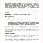 Teresa Das Neves, Secretaria del Gobierno de Tumaco, explicó que «a las 1:13 de la mañana, se emitió la primera carta de noticias de la computadora y el segundo fue un permiso de advertencia para el cual se convocó un Consejo de Gestión de Riesgos Virtuales»