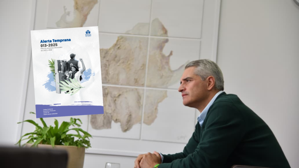 La alarma advierte Sobre las amenazas resultantes de la dinámica de la hegemonía, la consolidación, la coexistencia o la disputa territorial de los grupos armados ilegales (Gai) en el contexto de conflictos y delitos organizados, que pueden afectar los derechos básicos, así como libertades políticas y cívicas, en los procesos electorales que tendrán lugar a principios de 2025 y 2026.