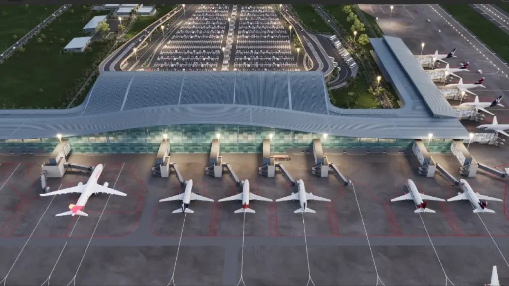 La propuesta está considerando Construcción de un aeropuerto desde una pista de 3100 metros, terminal de pasajeros 103 630 m² con una capacidad para 17 millones de pasajeros por año, 16 puentes de enfoque y una terminal de carga moderna. La infraestructura se desarrolla de acuerdo con los principios bioclimáticos y la neutralidad de carbono, con una gestión eficiente del agua, energía limpia y procesos sostenibles.