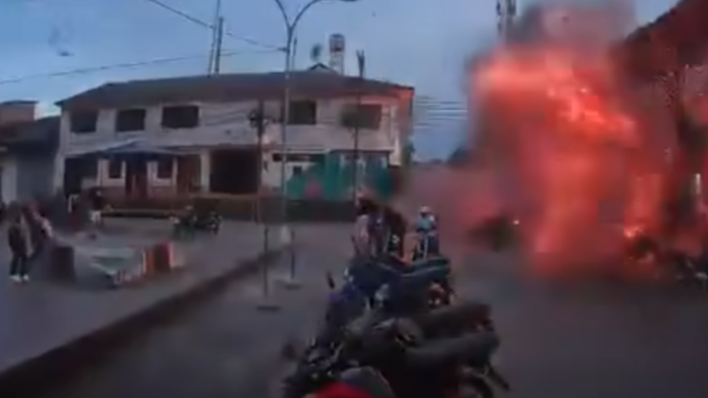 Los momentos de la explosión de una moto bomba en Balboa, Cauca, 6 de diciembre. Foto:video