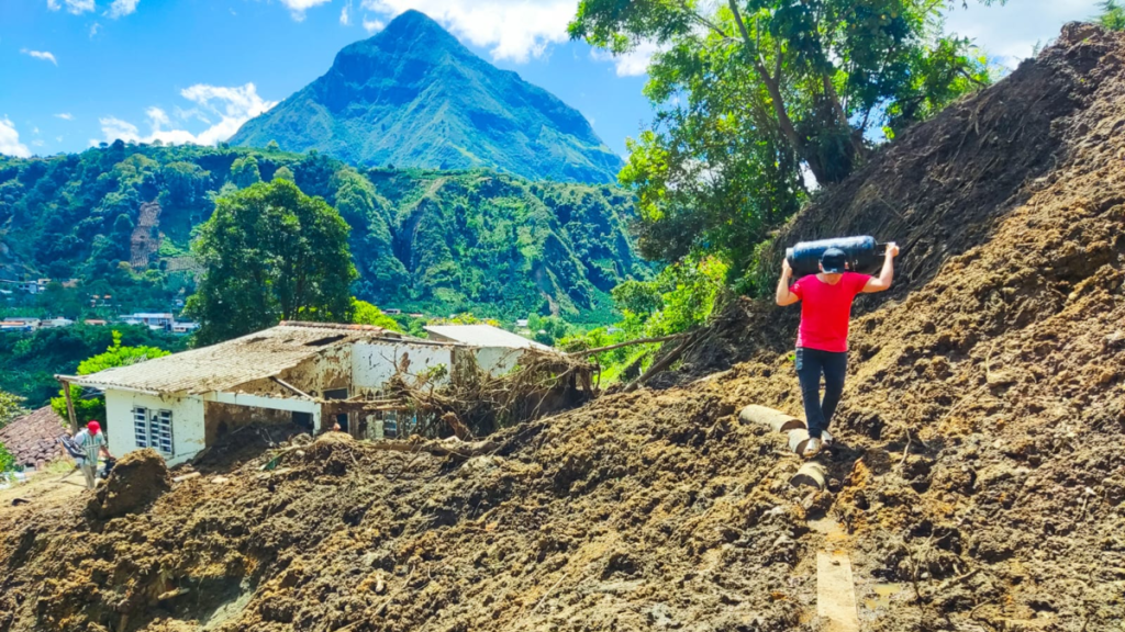 “El domingo en la madrugada hubo otro deslizamiento de tierra que cubrió esta cabaña y se tomó la decisión de evacuar porque la verdad es que es difícil, muy complicado”, comentó.