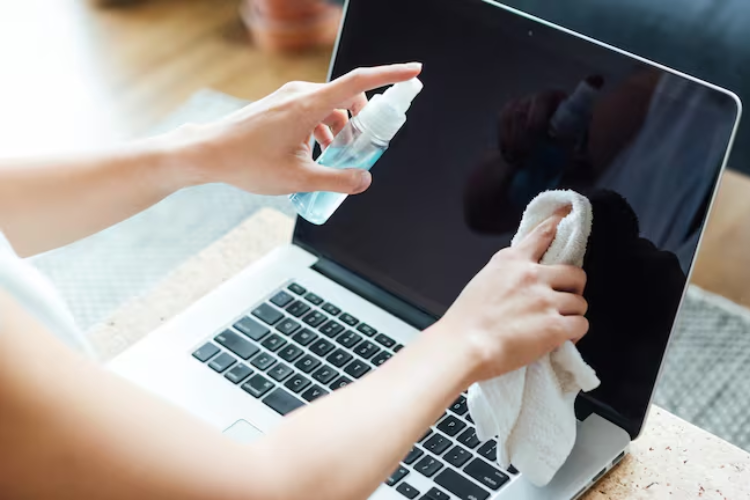 Nunca aplique el líquido directamente a la pantalla de la computadora. La forma correcta de limpiar es con una tela apenas humedecida. Una pequeña precaución puede evitar daños costosos y extender el funcionamiento adecuado de su equipo.
